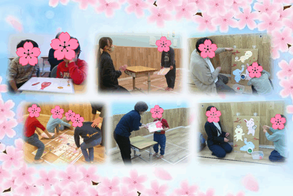 運動課題では、保護者の方と協力する遊びや子どもたち全員でパズルの完成を目指す活動を取り入れています!「もう少し紐を引っ張って?もっとそっちだよ~」といった、子どもたちと保護者との普段のコミュニケーションの様子も見られ、微笑ましい気持ちになりました🌸