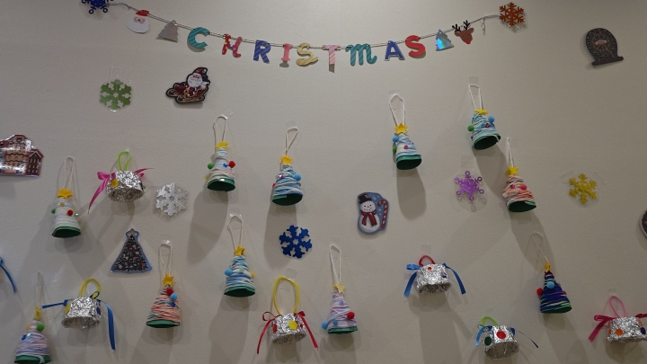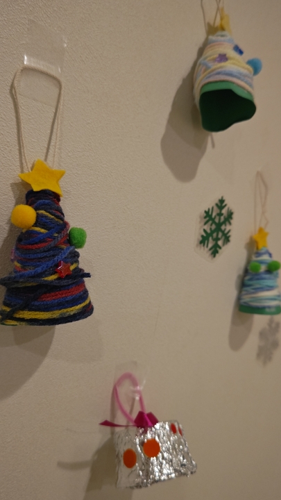 まるソラもクリスマス一色になり始め、可愛らしい作品が続々と増えてきました。12月の製作はベルとツリーのクリスマスオーナメント作りをしております。